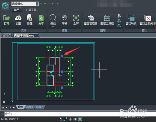 打開之后的圖紙只能移動和放大縮小查看圖紙,那么,在左上角點覽圖模式下拉三角選擇編輯模式。