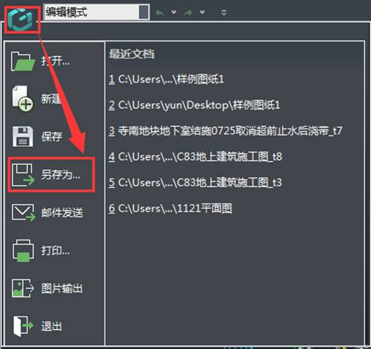 點(diǎn)擊左上角的軟件圖標(biāo),在下拉菜單中選擇另存;