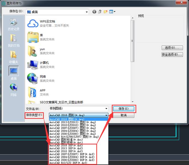 在彈出的對(duì)話框中,保存類型選擇“dxf”,然后點(diǎn)擊保存確定。