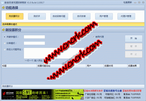 歪碰百度知道回答管家是一款百度知道周邊工具,簡(jiǎn)單易用.包含刷投票積分、刷好評(píng)、自動(dòng)回答問題、自問自答、用戶管理、代理ip管理等功能.
