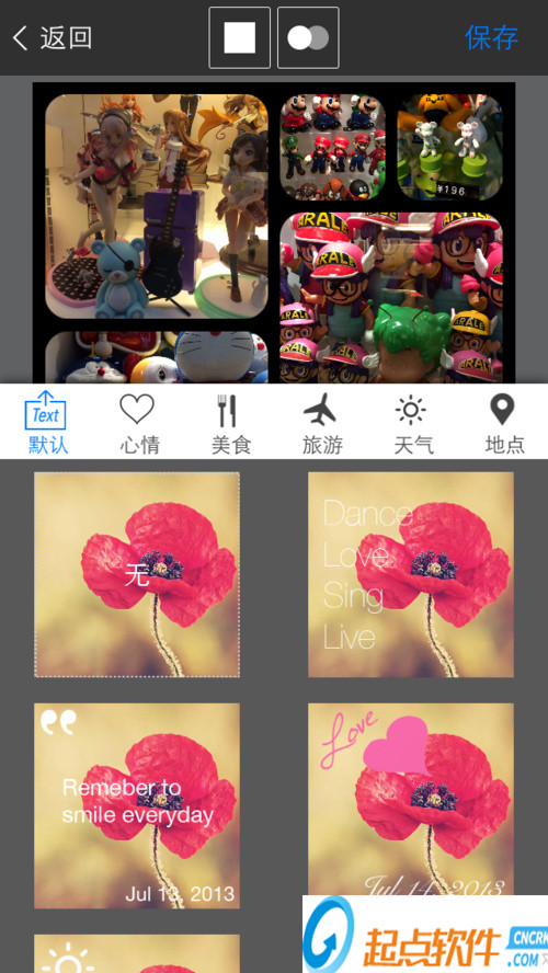 上圖中默認(rèn)按鈕,選擇固定的文字樣式,包括心情、美食等;