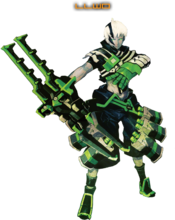 在月面宮殿上謎樣的存在,和BRS正好相反,白發(fā)并穿著白衣,右眼燃燒粉色火焰。武器為巨大的鐮刀,背后裝備8枚翼,也擁有一個類似黑巖射手的槍。 統(tǒng)帥整個“使者”,被稱為總督。自稱擁有旺盛的好奇心,當年在地球時以著名歌手辛格?菈普(SingLove、シング?ラブ)作為身分,并留下自己的DNA提供地球人研究制造對抗外星人的兵器。