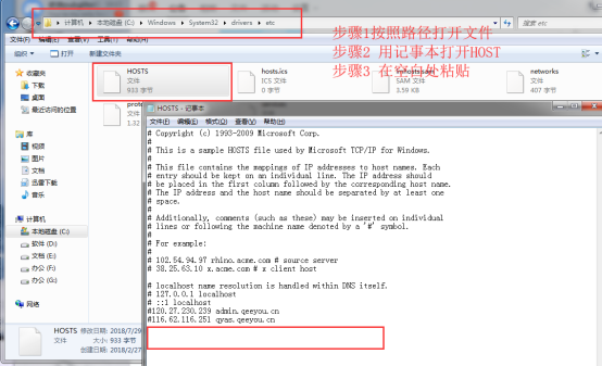 按照圖片上的路徑打開hosts,然后將以下內(nèi)容復(fù)制粘貼到hosts的空白地方;