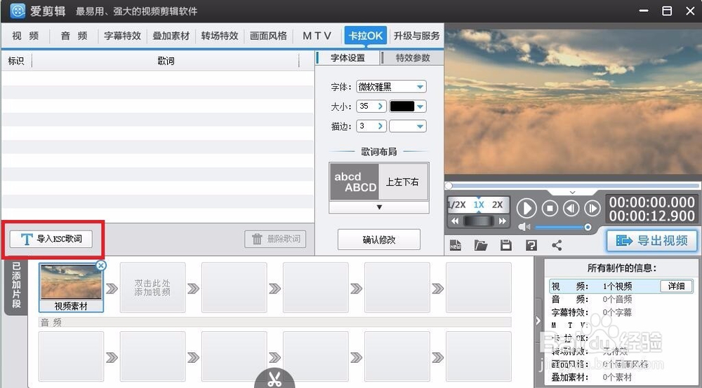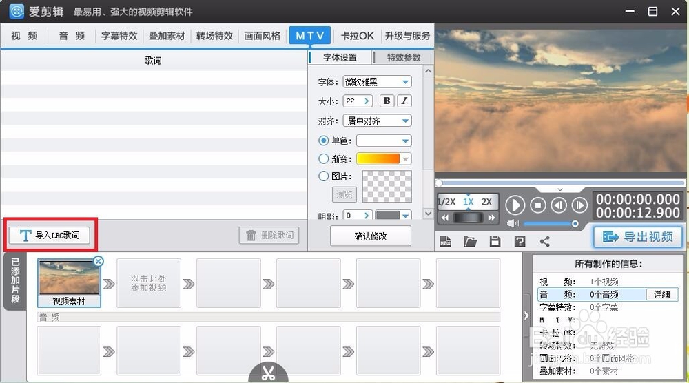 MTV/卡拉OK:添加MTV功能,需要倒入“LRC歌詞”,添加卡拉OK,需要倒入“KSC歌詞”,如圖所示