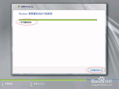 11、安裝過程系統(tǒng)會自動重啟,無需干預。當然可選擇立即重新啟動,如圖。