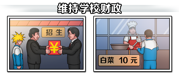 作為一個(gè)優(yōu)秀的校長(zhǎng),要通過(guò)各種手段開(kāi)源節(jié)流,必要的時(shí)候可以使用一些特殊手段。例如收擇校費(fèi)和食堂漲價(jià)來(lái)在短時(shí)間內(nèi)獲得大量資金。但是這些手段往往有負(fù)面影響,應(yīng)當(dāng)謹(jǐn)慎使用。