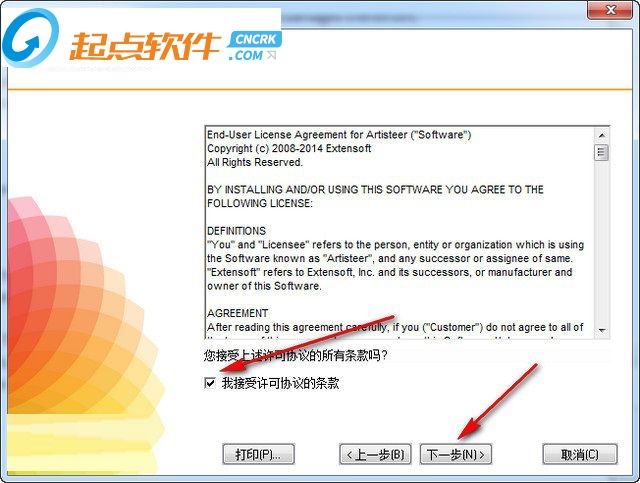 3、彈出許可協(xié)議界面后,用戶仔細(xì)閱讀安裝許可協(xié)議,勾選“我接受許可協(xié)議的條款”,然后點(diǎn)擊下一步。