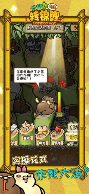 竹鼠才不要轉(zhuǎn)錦鯉游戲操作很簡單,玩家只需點點點,就可以讓竹鼠跳火鍋、落地成盒、洗馬桶……等一系列魔鬼試煉,從而刺激另一只竹鼠進化。變性什么的都是小事。