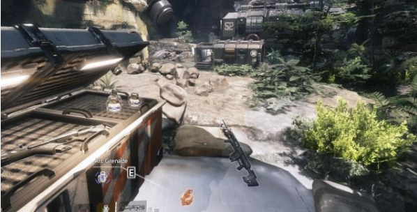 接著來(lái)到IMC駐守地正面的巖縫上,在這里有一名守衛(wèi)看守著一個(gè)武器箱,也要將其撂倒。