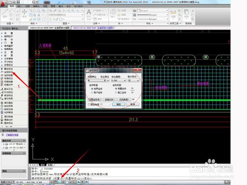 7、如圖操作,先點(diǎn)擊左邊工具欄的坐標(biāo)標(biāo)注~在底下任務(wù)欄中輸入命令S,就會(huì)彈出坐標(biāo)標(biāo)注的單位設(shè)置,將單位設(shè)置成M就可以。