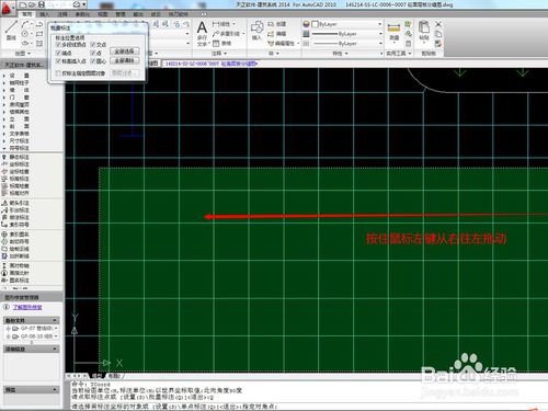 10、上一步完成后,鼠標(biāo)放到工作區(qū)中,按住鼠標(biāo)左鍵從右往左拖動(dòng)需要點(diǎn)坐標(biāo)的區(qū)域。