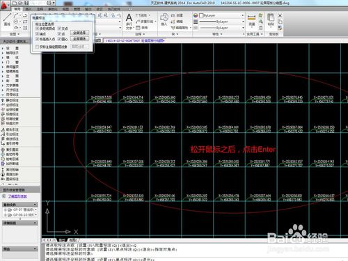 11、松開(kāi)鼠標(biāo)之后,回車鍵,在被你選中的交叉點(diǎn)的所有地方都會(huì)出現(xiàn)坐標(biāo),完成了。