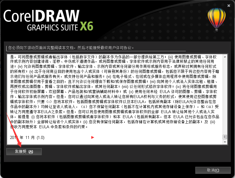 2. 閱讀協(xié)議,將協(xié)議滾動至最下方,并點(diǎn)擊“我接受”。