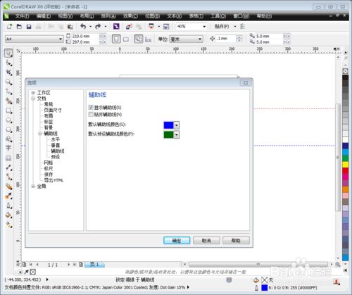 在彈出的對話框中,選擇左側(cè)中的“輔助線”該選項(xiàng)。那么接下來就可以對輔助線進(jìn)行基本設(shè)置。