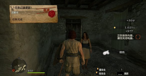 往前走一段就會看到巨龍,這邊操作提示會提醒我們按ALT來格擋,不過這邊沒有戰(zhàn)斗,迅速往前會遭遇雜魚一只,秒殺之。