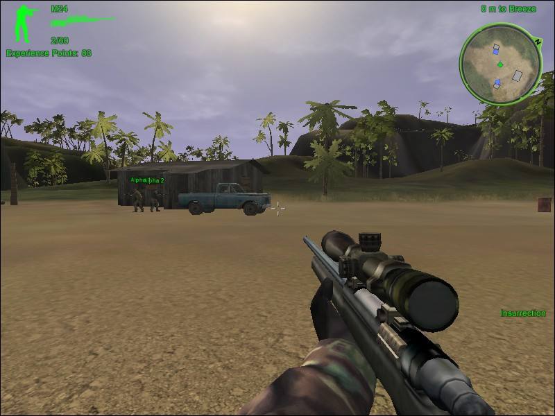 荒漠山谷戰(zhàn)。本關是狙擊手的樂園,上來在找個有利位置,把西北面的幾支巡邏隊打發(fā)掉,接下來把敵人的7個哨塔以及周圍機槍堡一個個秒掉,附近有個彈藥補給點,可以補充。從山谷頂朝下對著敵人爽爽的狙,朝房子里丟手雷。完后搜查敵人營地,這時隊友會來幫忙,干掉剩余的敵人,注意不要輕易進帳篷,帳篷擋不了子彈,萬一被其他敵人掃射,就是活靶。在一個門口停有白色卡車的房子里,找到了被俘虜?shù)娜速|,掩護人質到達直升機接應點,過關。本關只要小心別讓敵人沖太近就行了,建議用狙,難度2星。