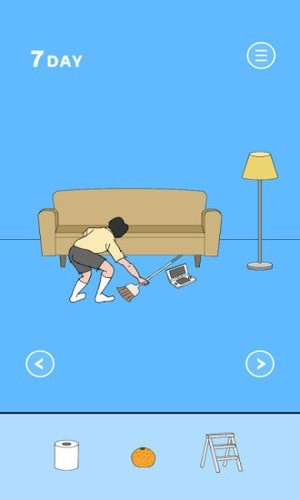 3、點右下圖標進入右邊房間,拿掃帚,到左邊房間用掃帚點沙發(fā)得到。