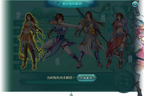 二、選中所要激活的隱藏角色,點擊開始解鎖。 隱藏角色依次為 幻想三國志1、2、3、4的角色