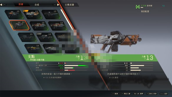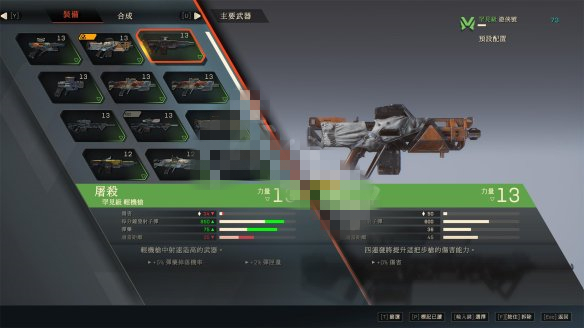 武裝系統(tǒng)★武裝系統(tǒng)分為突擊發(fā)射器,武器,手榴彈,配件,輔助裝備,其中武器可以攜帶兩把。