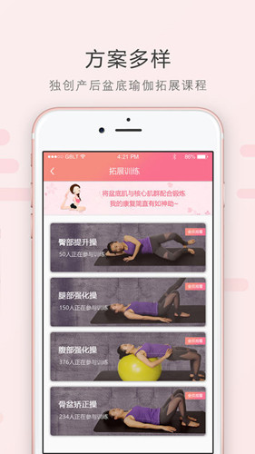 1、入門簡(jiǎn)單:輕松入門,量身打造鍛煉方案;2、方案多樣:獨(dú)創(chuàng)產(chǎn)后盆底瑜伽拓展課程;