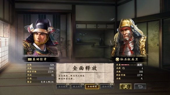 本作全新追加的“攻城戰(zhàn)”以全國(guó)地圖中具代表性的各地名城為戰(zhàn)場(chǎng)。攻城方可逐一攻陷曲輪朝天守前進(jìn),不同的城曲輪數(shù)量與進(jìn)軍路線也會(huì)不同。各曲輪皆有“攻略難度”、“參戰(zhàn)上限”、“耐久”,曲輪的“攻略難度”越高,給予曲輪士兵或“耐久”的傷害越小;士兵數(shù)超過(guò)“參戰(zhàn)上限”時(shí),即便攻擊也無(wú)法給予更多傷害。曲輪的“耐久”為 0 時(shí),籠城部隊(duì)會(huì)后退,但有些城需要攻略好幾層曲輪才可抵達(dá)天守,玩家必須做好萬(wàn)全準(zhǔn)備,才能一面抑制損耗一面攻陷城池。