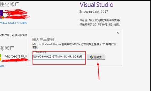 6、在彈出的窗口輸入密鑰,點擊”應(yīng)用"。