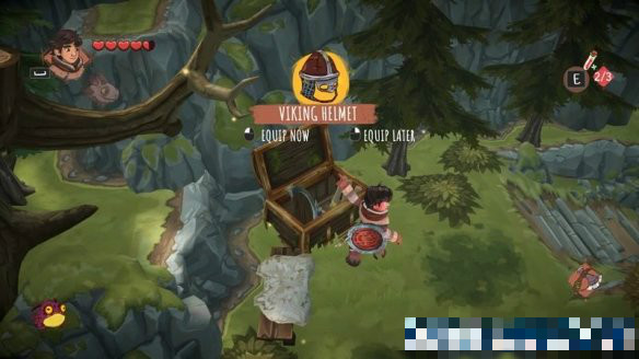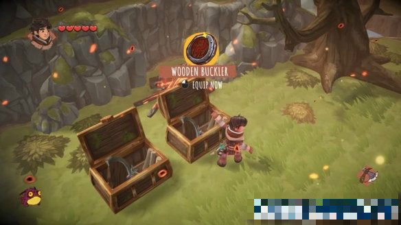 開(kāi)始后,首先將上面的兩個(gè)箱子打開(kāi)可獲得一把斧頭和一個(gè)盾牌。