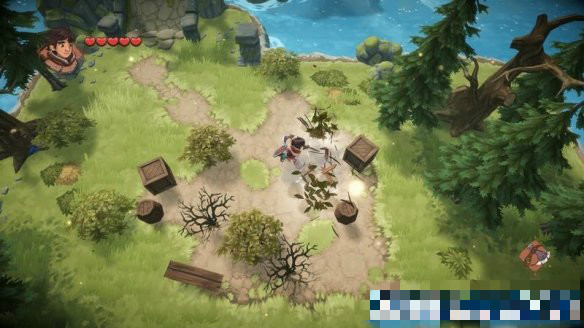 隨后來(lái)到一顆大樹(shù)處,這里會(huì)有教學(xué)如何開(kāi)路,只需將大樹(shù)砍倒便可形成一條路。
