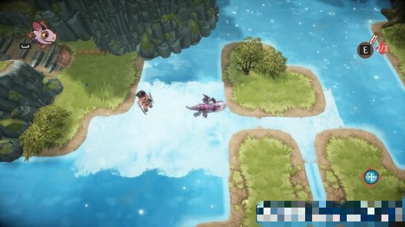 這里需要使用空格鍵切換控制龍,對(duì)水面進(jìn)行噴射即可結(jié)冰形成路繼續(xù)前進(jìn)。