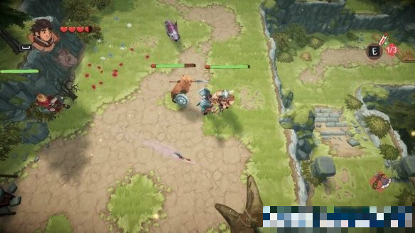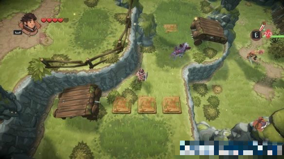 來(lái)到下個(gè)場(chǎng)景,這里有兩名敵人,其中的錘兵會(huì)釋放一個(gè)自動(dòng)發(fā)射弓箭的裝置,對(duì)玩家威脅較大,需要優(yōu)先解決掉。