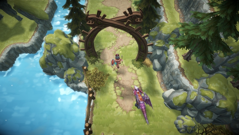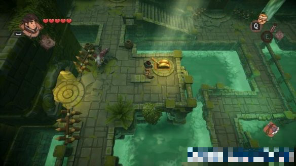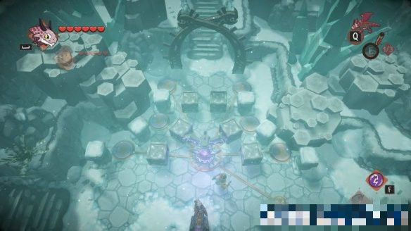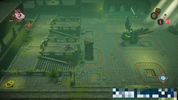 來(lái)到下個(gè)場(chǎng)景,這里的開(kāi)關(guān)中間的路斷開(kāi)了,可以使用龍的遠(yuǎn)程普攻將開(kāi)關(guān)打開(kāi),會(huì)解鎖右側(cè)的寶箱障礙。