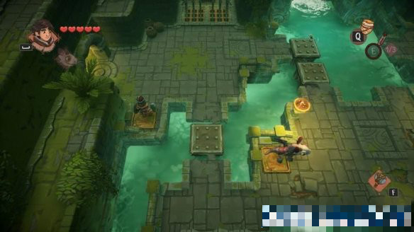 需要讓其中一名角色先放到上方按住按鈕,打開(kāi)下方的水柱,讓另一名角色到中間按住按鈕,以此類(lèi)推,一路給對(duì)方開(kāi)路通過(guò)陷阱。