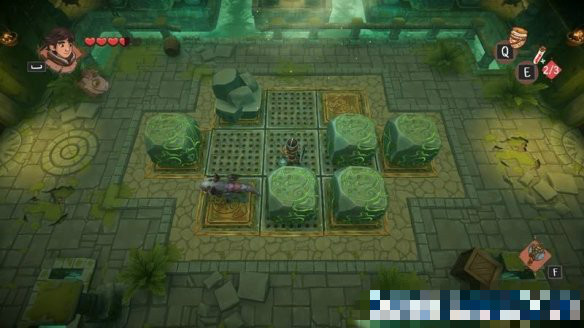一路來(lái)到Boss關(guān)卡前的場(chǎng)景,為了解鎖Boss場(chǎng)景,需要將兩側(cè)的箱子都推到按鈕處。