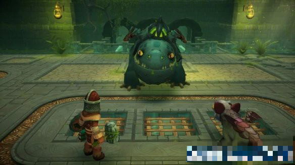 Boss戰(zhàn)的難度一般,首先需要讓混合龍到邊上的高臺(tái)按鈕處,踩上時(shí)會(huì)打開(kāi)石柱。