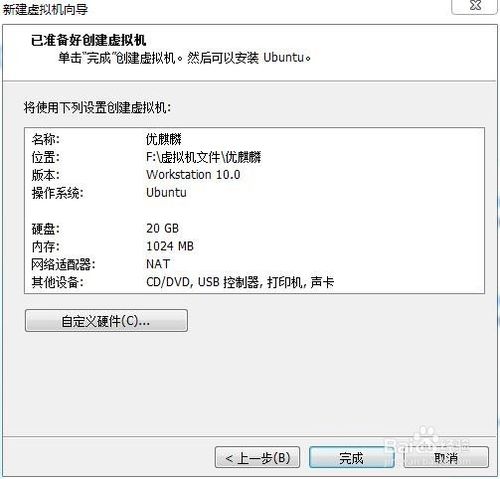 6.一般硬件會(huì)自己設(shè)置好不用我們管,如果想改的話點(diǎn)自定義硬件。然后點(diǎn)完成