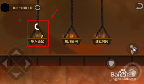 在此界面,必須要將火柴人跳到“單人匹配”,“加入房間”,“建立房間”才能開始游戲,(亂點是進不去游戲的)