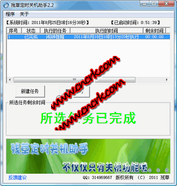 殘草定時專家是一款windows操作系統(tǒng)下的定時關機、提醒、打開程序或網站的軟件,是一個有鬧鐘功能的,能滿足有各種定時控制需求的用戶。