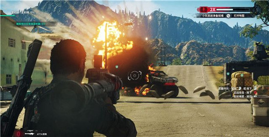 抓鉤升級《正當(dāng)防衛(wèi)》可不是那種“回歸初心”類型的游戲,瑞可裝備的抓鉤一直在進(jìn)化著,如今已經(jīng)成為無比強(qiáng)大的多功能道具了。除了快速移動(dòng)、把敵人物品捆綁在一起之外,抓鉤在流程初期就可以附在火箭推進(jìn)器或者熱氣球上了。這些功能可以有機(jī)結(jié)合到一起(你想打造一輛“飛行火箭巴士”也是可以的),讓你隨心所欲地行動(dòng)。另外不要忘了,你現(xiàn)在可以一次性發(fā)射10條鉤索哦,祝你玩得愉快!