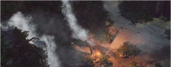 諾里亞帶領(lǐng)手下從山路繞到側(cè)門,命令士兵集火可以破壞上圖的木門。