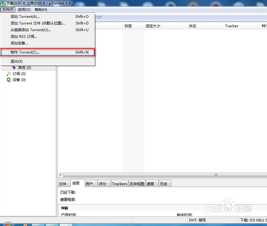 首先,打開utorrent,選擇【文件】——【制作種子】,如圖: