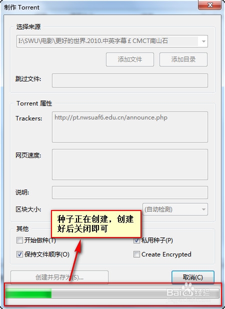 創(chuàng)建種子過程如下圖,創(chuàng)建完成后關(guān)閉即可。