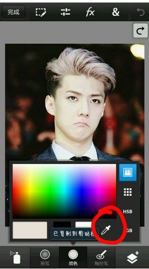 4 這一步是關(guān)鍵,提取顏色,把圈起來的那只筆拉到臉部,如圖,提取臉部顏色