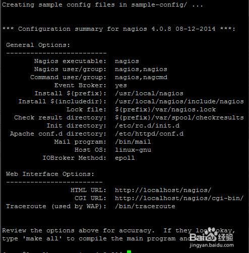 至此nagios基本已經(jīng)安裝完畢,但這時(shí)還不能馬上啟動(dòng)nagios,需要以下設(shè)置。
