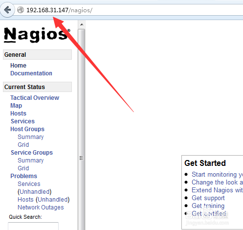 最后在瀏覽器檢查下安裝后的情況,能正常打開(kāi)nagios的頁(yè)面即可