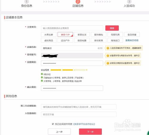 2、按順序把入駐的基本信息帶※號的填寫好;