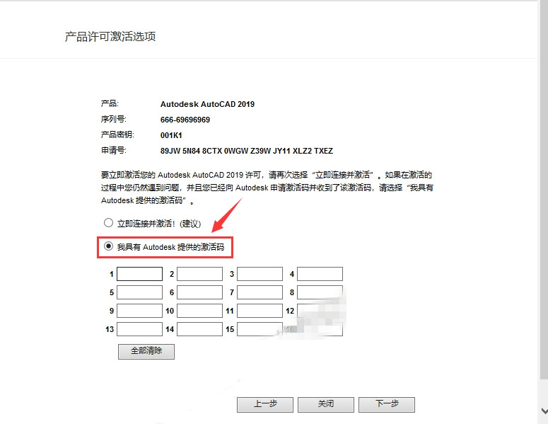 14.選擇我具有Autodesk提供的激活碼。