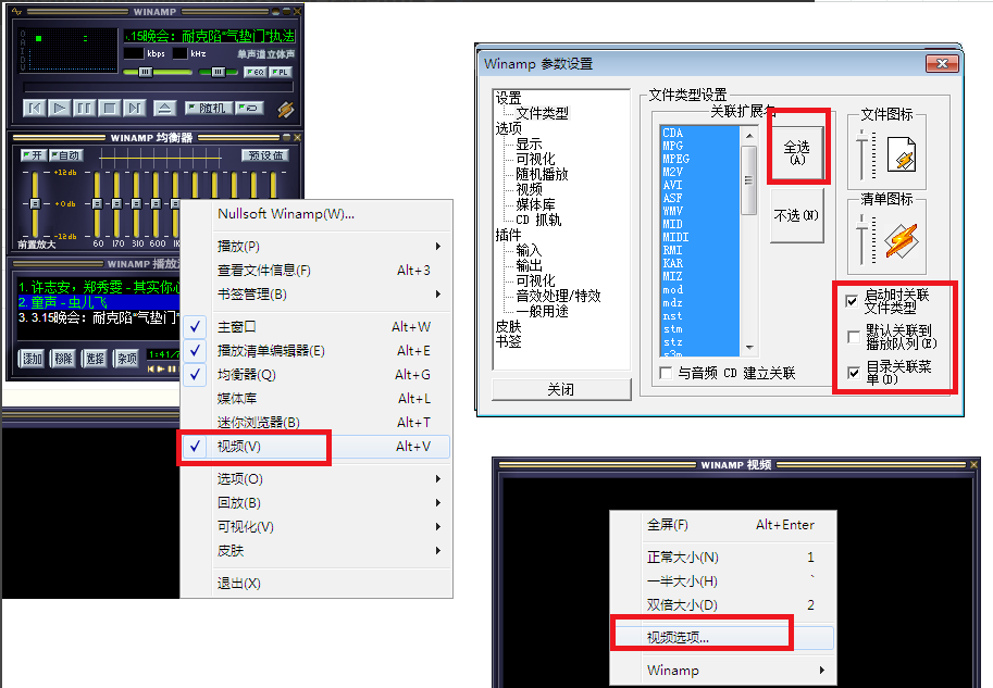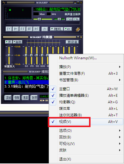 首先要清楚Winamp可以播放哪些視頻:先右擊Winamp勻衡器——勾選視頻界面——右擊視頻界面——選擇視頻選項(xiàng)。
