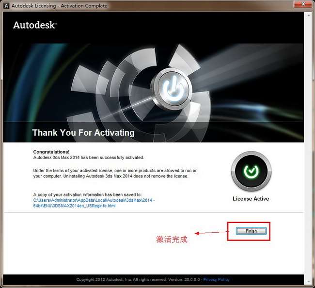 第二十一 步:3dmax2014 64位中文版成功安裝激活完成