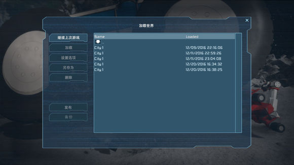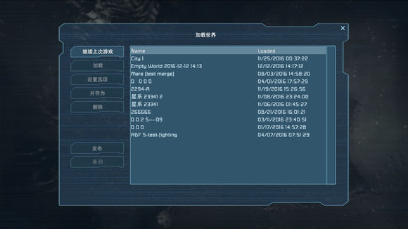 從太空工程師中文版主菜單進(jìn)入“加載世界”的菜單,你可以看到所有之前游戲的存檔,要進(jìn)行之前的游戲只要雙擊你想要的世界就可以了。如果你想載入某個(gè)存檔中較早的存檔點(diǎn),可以先點(diǎn)擊一下存檔,然后點(diǎn)擊“備份”,就會(huì)出現(xiàn)下圖的菜單,然后就可以選擇較早的存檔啦。
