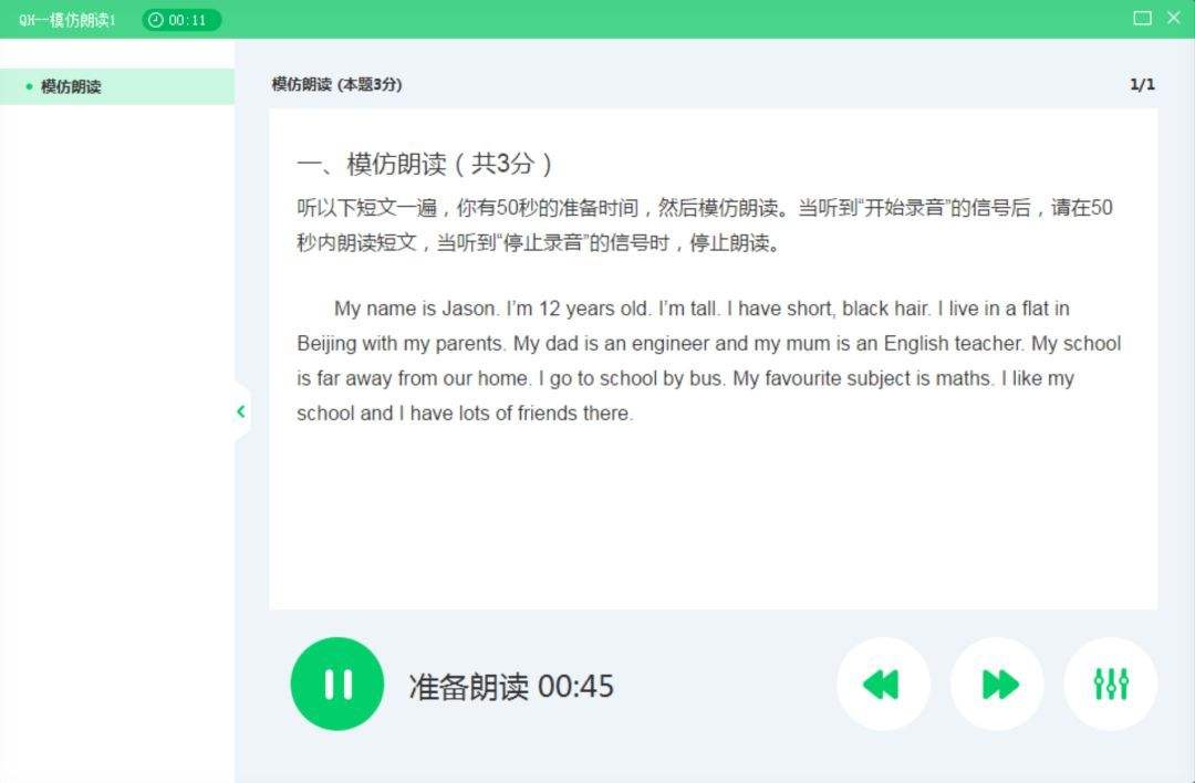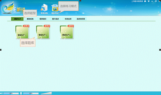 一、系統(tǒng)頁面上各按鈕功能軟件包含專項(xiàng)訓(xùn)練和模擬考試兩大模塊。專項(xiàng)訓(xùn)練模式有助于學(xué)生對(duì)自己薄弱環(huán)節(jié)進(jìn)行強(qiáng)化練習(xí);模擬考試模式,完全按照聽說測試考試流程進(jìn)行。